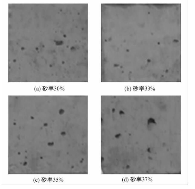 2) 砂率对混凝土表面气泡有一定的影响。在合理砂率范围内,随着砂率的减小,混凝土的表观质量得到改善。
