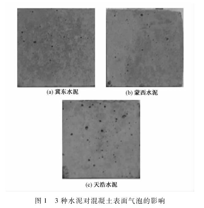 3 种水泥配制的混凝土物理力学性能见表 3 。 3 种水泥对混凝土表而 气 泡的影响见图 1 。